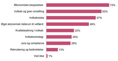 I en analyse SKI har gennemført i 2024, siger kommunaldirektører, økonomidirektører og statslige styrelsesdirektører m.fl., at indkøb først og fremmest er vejen til at sikre økonomiske besparelser og mere råderum til velfærd. Flere peger også på indkøb som et centralt redskab i den grønne omstilling.