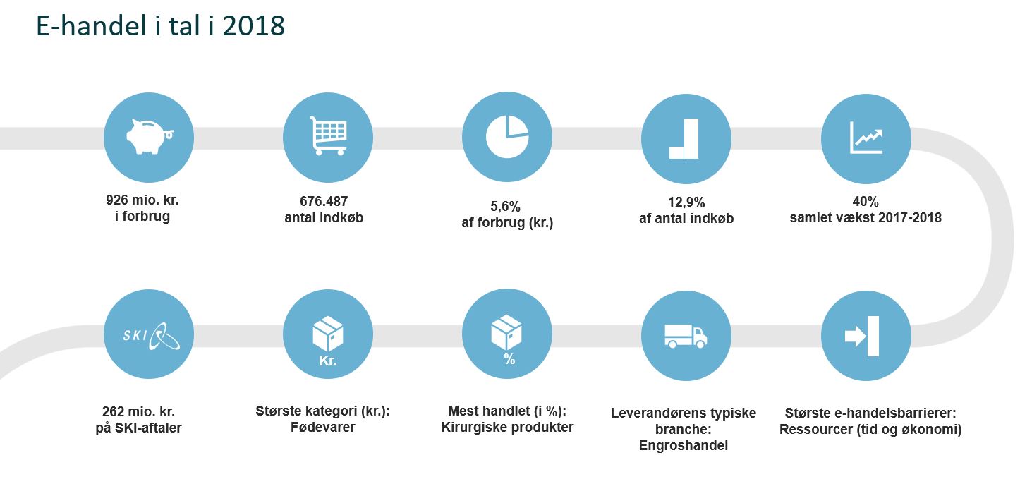 Kommunerne tager i stigende grad e-handel til sig, og området vokser år for år. Alene fra 2017 til 2018 er forbruget steget fra knap 600 millioner kroner til 926 millioner kroner på e-handelsområdet, hvilket svarer til en stigning i antallet af indkøb fra 488.000 til 676.487.